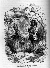 Hugh does not, at this stage, lend himself to caricature and Phiz's depiction is of a cavalier but "picturesque appearance." Later representations of Hugh, however, show an abrupt move from the picturesque to the grotesque.