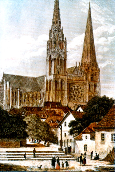 ...he had seen, rising slowly and wonderfully and with boundless beauty above the stubble fields blowing with wildflowers, slowly rising into the sunlight, as centuries before the pilgrims straying over those same fields had watched them rise, the twin spires of Chartres Cathedral UTV, 12.