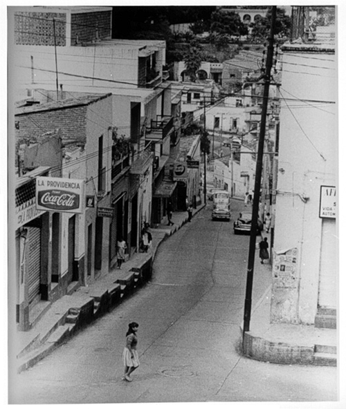 The Calle Hidaglo, descending from the Borda Gardens past the Zócalo, to meet the Calle las Casas (in the book, the Calle Tierra del Fuego), which rises to intersect with the Calle Humboldt (in the book, the Calle Nicaragua).