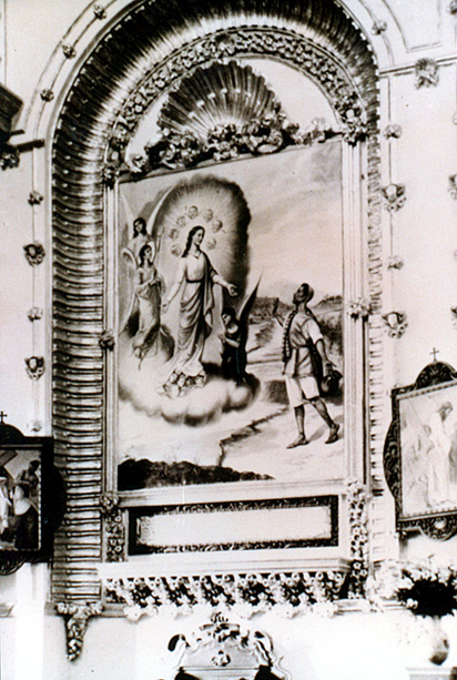 | The Santuario Ocotlán is dedicated to the legend of Juan Diego and the Virgin of the Burning Pine: one fine spring day in 1541 Juan Diego, on his way to get water for the sick, met the Virgin in pine forest; she promised the next time they met to give him water that would better samarián the sick. When next they met, beside a barranca, he asked for the water and she created a pure fountain from the rocks. Juan Diego's story was examined by the Franciscans, who went to the pine wood that night, and found a large pine burning without being consumed; opening it they found a beautiful image of Mary, which they took to the nearby Capilla de San Lorenzo. The next night, miraculously, the image of the Virgin had assumed the place of the saint. | |