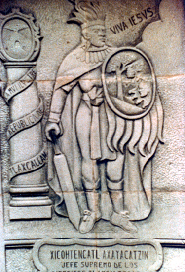 The travel folder confuses the younger Xicotancatl with his father, the blind Senator, who made the celebrated speech; the wall panel on the ayuntamiento in Tlaxcala increases the confusion by describing the younger Xicotancatl as "supreme chief of the Tlaxcalan warriors", and by placing the words "Viva Jesus" into the mouth of the unrepentant pagan. |