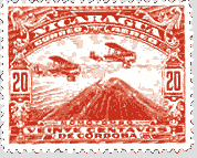 Above: Nicaraguan stamp (1902, 20¢ red), featuring Momotombo volcano.