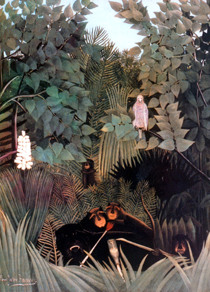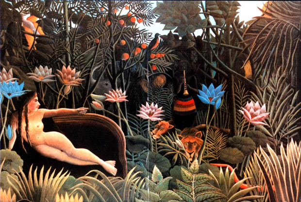 Above & left: Henri Rousseau (1844-1910), le Douanier, whose "jungle" scenes frequently figure tigers. Above, The Dream (1910), painted in the last year of the artist's life. A legend had developed, quite without foundation, that Rousseau as a young man had gone to Mexico and served under Maximilian to get the background for his jungle scenes (the mundane reality was the Paris zoo).