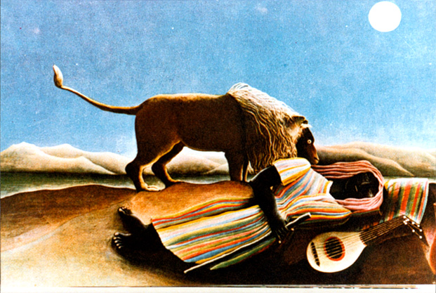 Below: Hugh's sentiment is shaped by Henri Rousseau's The Sleeping Gypsy (1897). |