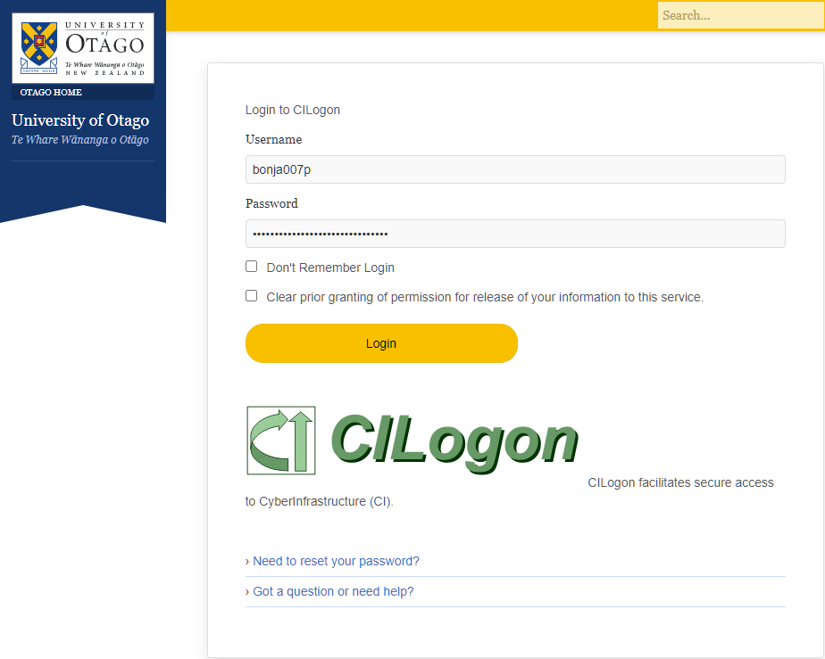 This will redirect you to a University of Otago login page. Please sign in with your Otago username and password.