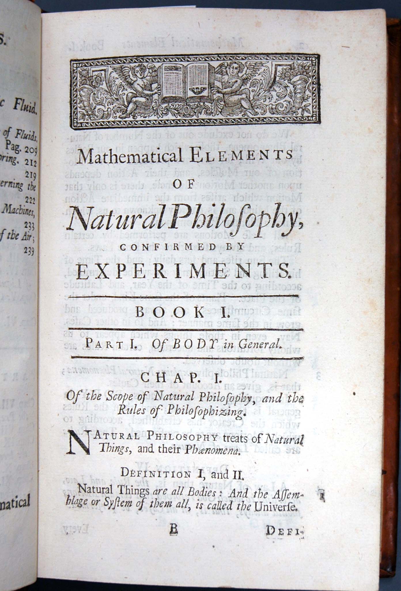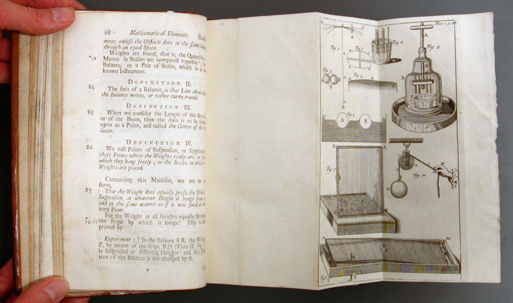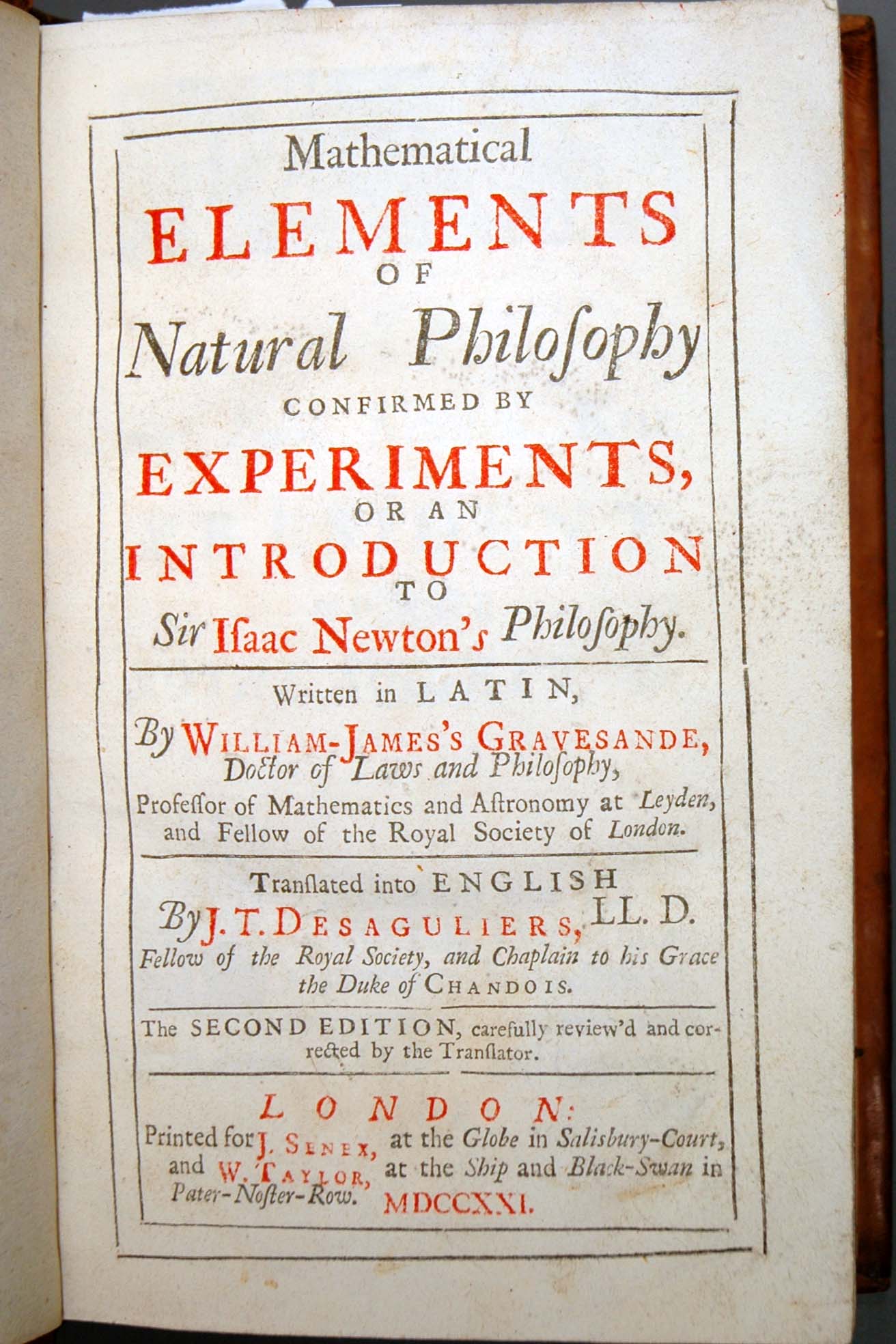 Willem Jacob's Gravesande, Mathematical Elements of Natural Philosophy. 2nd ed. London: Printed for J. Senex,…and W. Taylor, 1721. DeB Eb 1721 G