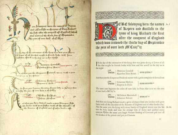 Numerous chronicles recounting the history of England were produced in London in the fifteenth century, and all were published anonymously. They also all borrowed and copied information from each other, as well as other sources. Robert Fabyans (d. 1513) name became attached to a work known as The Newe Cronycles of England and Fraunce, and later, John Stow, in the sixteenth-century, confused this work with another now known today as The Great Chronicle. Whether Fabyan actually had a hand in The Great Chronicle is impossible to tell: at the very least both works draw on the same sources, and manuscripts of them appear to be written in the same hand.