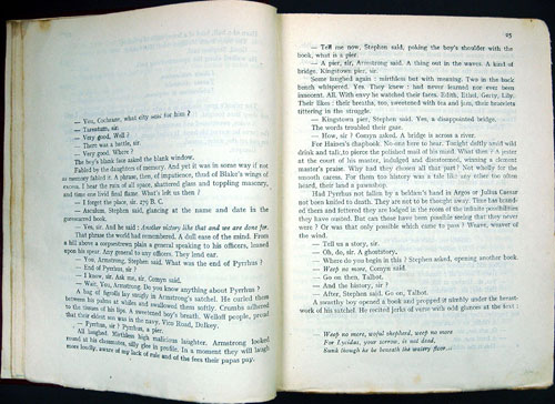 The Guardian called William Burrough's "Dead Fingers Talk" a 'Build-it-yourself obscenity kit.' First published in 1963, it is a compilation of his earlier works: "Naked Lunch, The Soft Machine and The Ticket that Exploded". In December 1964, the Indecent Tribunal considered an application by the Director of the New Zealand National Library service on whether Dead Fingers Talk was indecent. After wading through Burroughs's 'impenetrable' literary style, judgement was made on this 'linguistic porridge' as not indecent. The cigarette burns on the fore-edge of this book resemble blackened fingers.