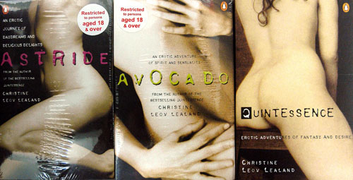 These three paperback editions by Christine Leov Lealand were published by the New Zealand Penguin branch in Auckland. Geoff Walker, Manager of Penguin (NZ), initiated the publication of these 'erotic fantasies', with the inkling that they would sell well. He was right. Quintessence, the first title, has sold over 35,000 copies, and mainly to the Australian market. The classification of 'R18' has to be prominently displayed, along with the customary shrink-wrap.