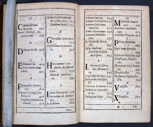 On display in this 1607 edition of the expurgated Index is an alphabetical listing of authors and titles under scrutiny by the Censors. Notable authors include Geraldus Mercator, Polidore Vergil, and Xenophon. The scrupulous censor, ready with inked quill to blacken out the offending passages, would have been frustrated with this particular copy. There are 191 pages missing between pages 368 and 561.