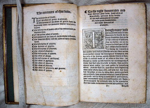 In 1538, a royal proclamation was issued in England by which no one was allowed to print any book unless licensed by a member of the Privy Council or from a person appointed by the King. This decree established the first regular censorship in England. William Thomas's "Historie of Italie" gave great offense to Queen Mary because of its criticism of the Italian clergy. One sentence read: 'By report, Rome is not without 40,000 harlots, maintained for the most part by the clergy and their followers.' The book was burned by the common hangman, and in May 1554 the author was hanged and quartered at Tyburn. This is the first edition.