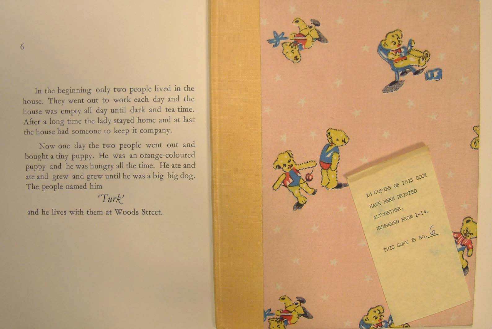 The children’s story The Happy House was written by Gwen Whitaker and printed between 1967 and 1968 by Herta (Gamby) Quinn. Much time and effort was spent on setting up the 28 pages of text, including the title-page. Unusually, this item was limited to only fourteen copies, and it was not for sale. It is a rare book, and there are no institutional copies. The Bibliography Room is not equipped for binding books; the quarter-bound coloured cloth binding was obviously done by an outside agency. And here is the art-deco block again, used this time to illustrate the Maslen family’s Christmas Greetings. Gwen Whitaker, The Happy House. Dunedin: Bibliography Room, University of Otago, 1967-68 |
