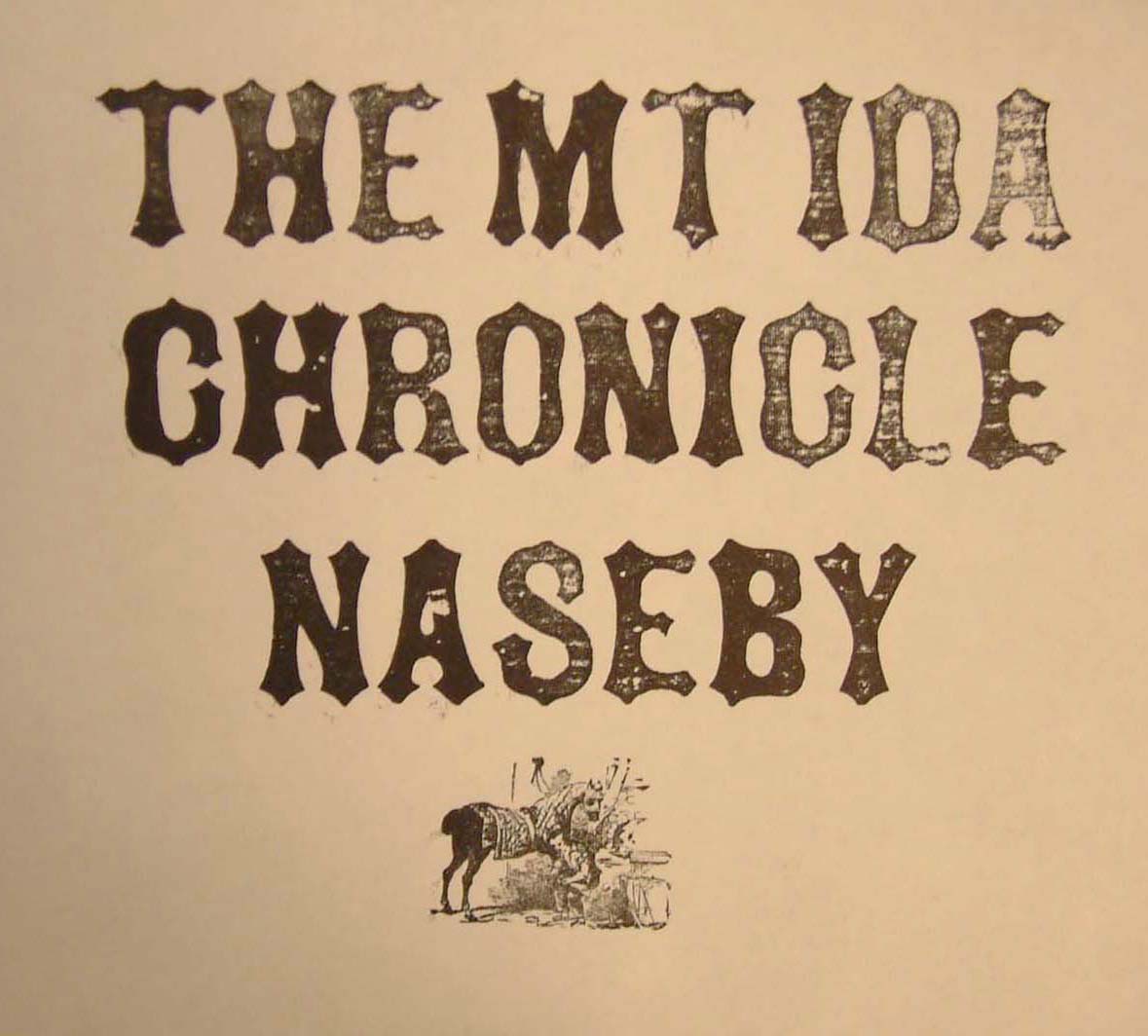 The Central Otago town of Naseby was first called Parker’s, then Hogburn and, for some years prior to 1874, Mt Ida. The local newspaper, the Mount Ida Chronicle, ran from February 1869 to December 1926. In 1990, Dr Maslen used nineteenth-century wooden type to create this keepsake poster, one of only three printing exercises that year. The Mt Ida Chronicle Naseby, 1990 |