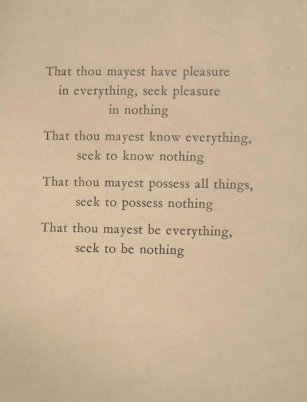 Jack Elliott’s yellow business card and Gavin Shaw’s simple but effective ‘Super 8’ membership ticket were two small jobs printed in the Bibliography Room. However, most of the printing continued to be done by English students, who were either interested in gaining more skills at setting type, or fulfilling assignment requirements in the Bibliography course. As can be seen from W. H. Auden’s ‘The Three Companions’, errors can easily be made when setting type. St John of the Cross, ‘That thou mayest have pleasure’, printed by the English class of 1970 |