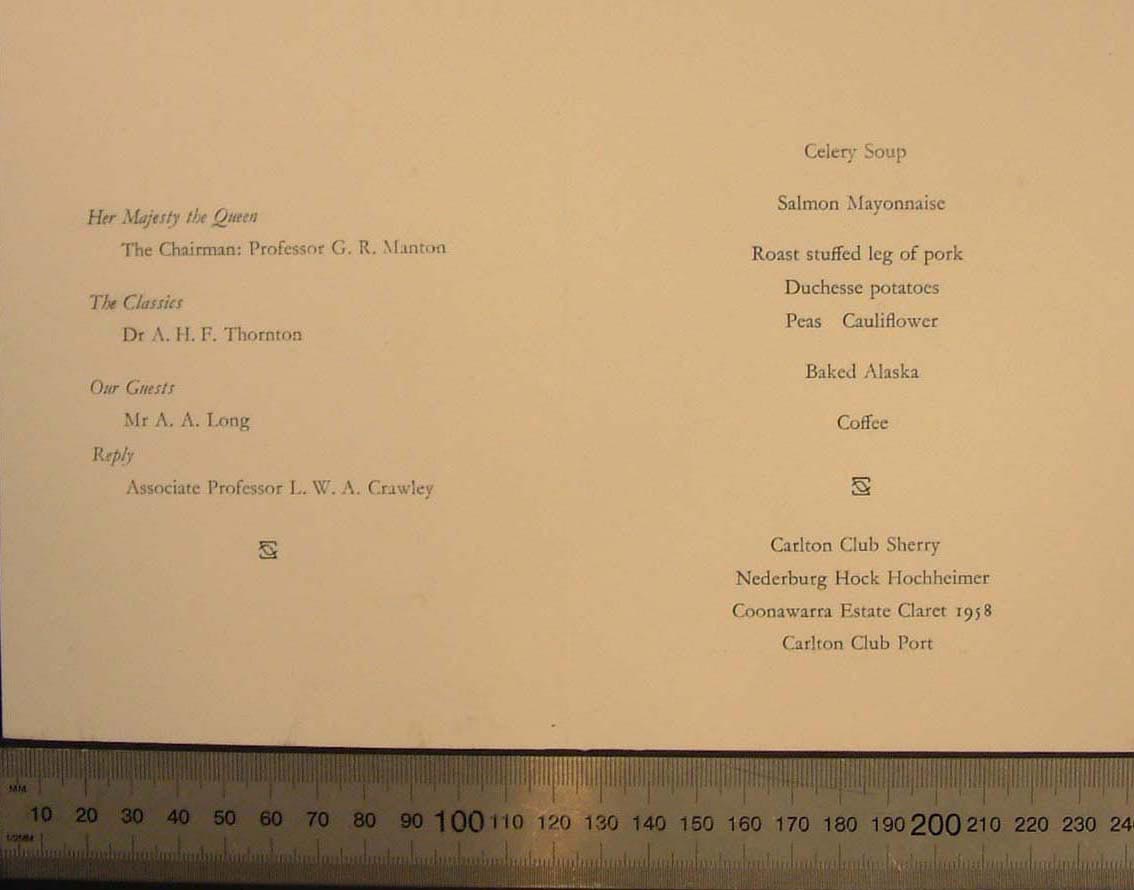 However, with freedom there comes responsibilities; and the University Arts Festival Drama poster and the menu for the Classical Conference of 1963 are far more conservative outputs. Dinner keepsake and menu for the New Zealand Universities Classical Conference, 17 May 1963 |