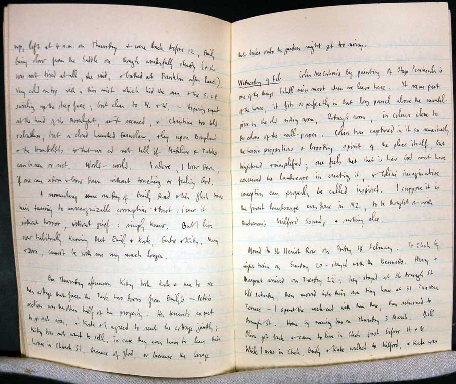 The original journals of Charles Brasch are housed at the Hocken Library. In his tight, legible hand, there are entries about day-to-day activities and his private thoughts on people, places, and events that cover the years 1939 to 1973. Given that he knew one day they would be read by others, he is especially honest about his own relationships, his own insecurities, and his legacy, especially as a poet. On 31 July 1955, and obviously without a good book to read, the entry reads: 'I am in a state of mind I expected never to suffer: I am almost bored.'