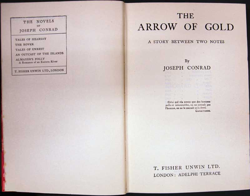 Joseph Conrad, The Arrow of Gold. London: T. Fisher Unwin, 1919. Brasch PR6005.O4 A8 1919;