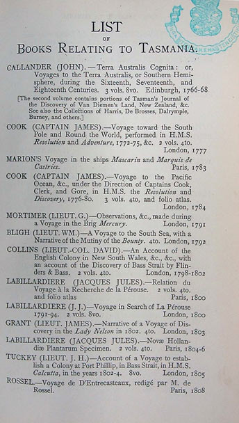 James B. Walker, List of Books Relating to Tasmania. Launceston, Tasmania: Aikenhead & Button, 1884. Vol. 63, no. 9. Hocken Pamphlet Collection.