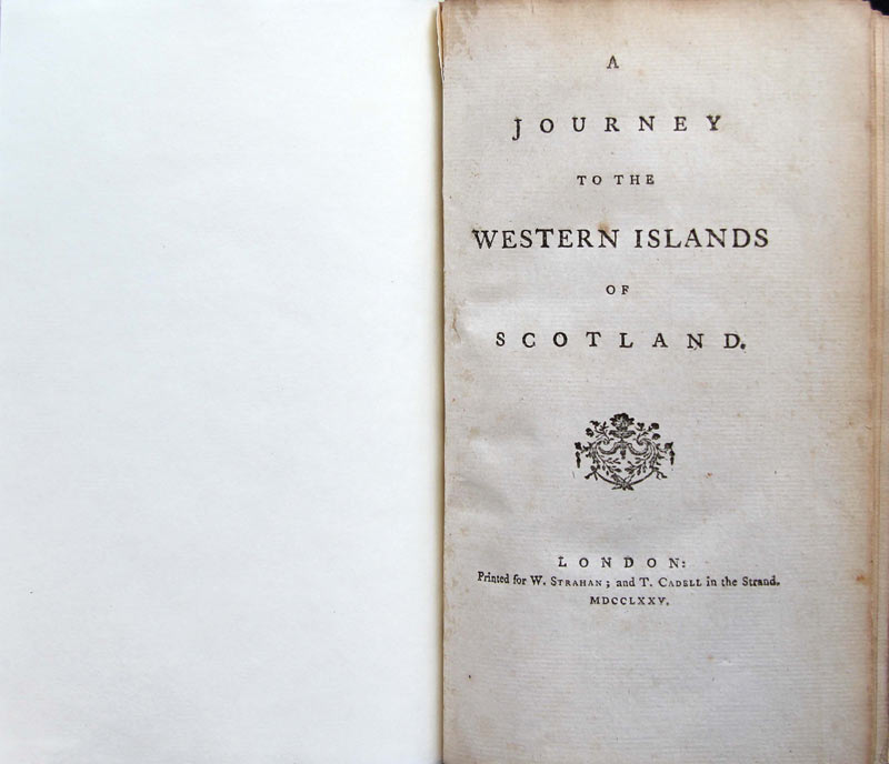 [Samuel Johnson], A Journey to the Western Islands of Scotland. London: Printed for W. Strahan; and T. Cadell, 1775.