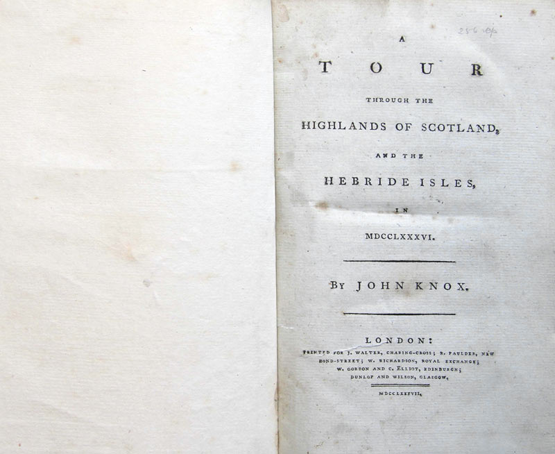 John Knox, A Tour through the Highlands of Scotland, and the Hebrides Isles, in MDCCLXXXVI. London: Printed for J. Walter [and six others], 1787.