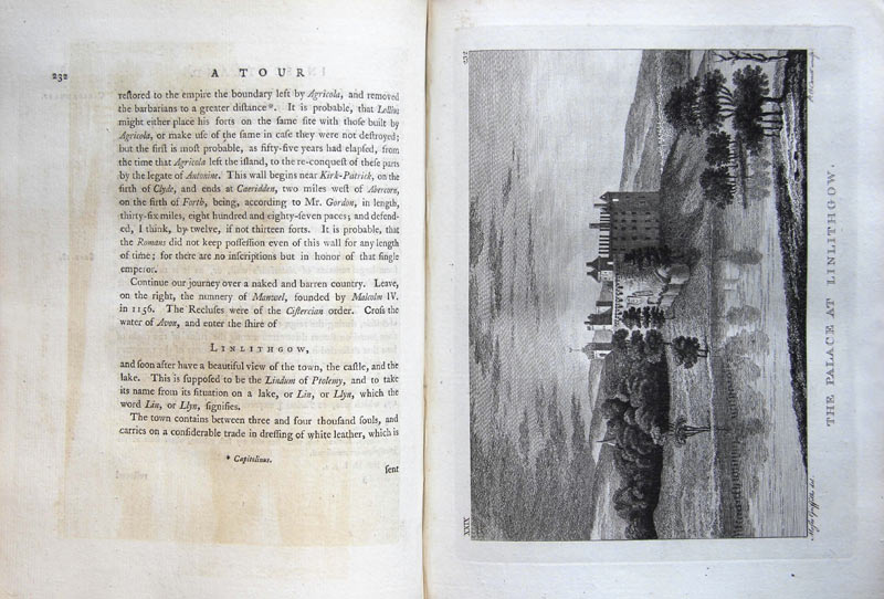 The engraving of Linlithgow Palace is but one of many in this 1790 edition. Linlithgow, 15 miles west of Edinburgh, was for many years the principal residence of the monarchs of Scotland. It was also the birthplace of Mary, Queen of Scots.