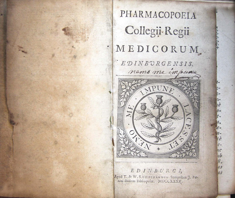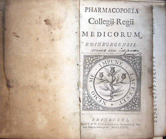 Royal College of Physicians of Edinburgh, Pharmacopoeia Collegii Regii Medicorum Edinburgensis. [Edinburgh: T. & W. Ruddimann], 1735.