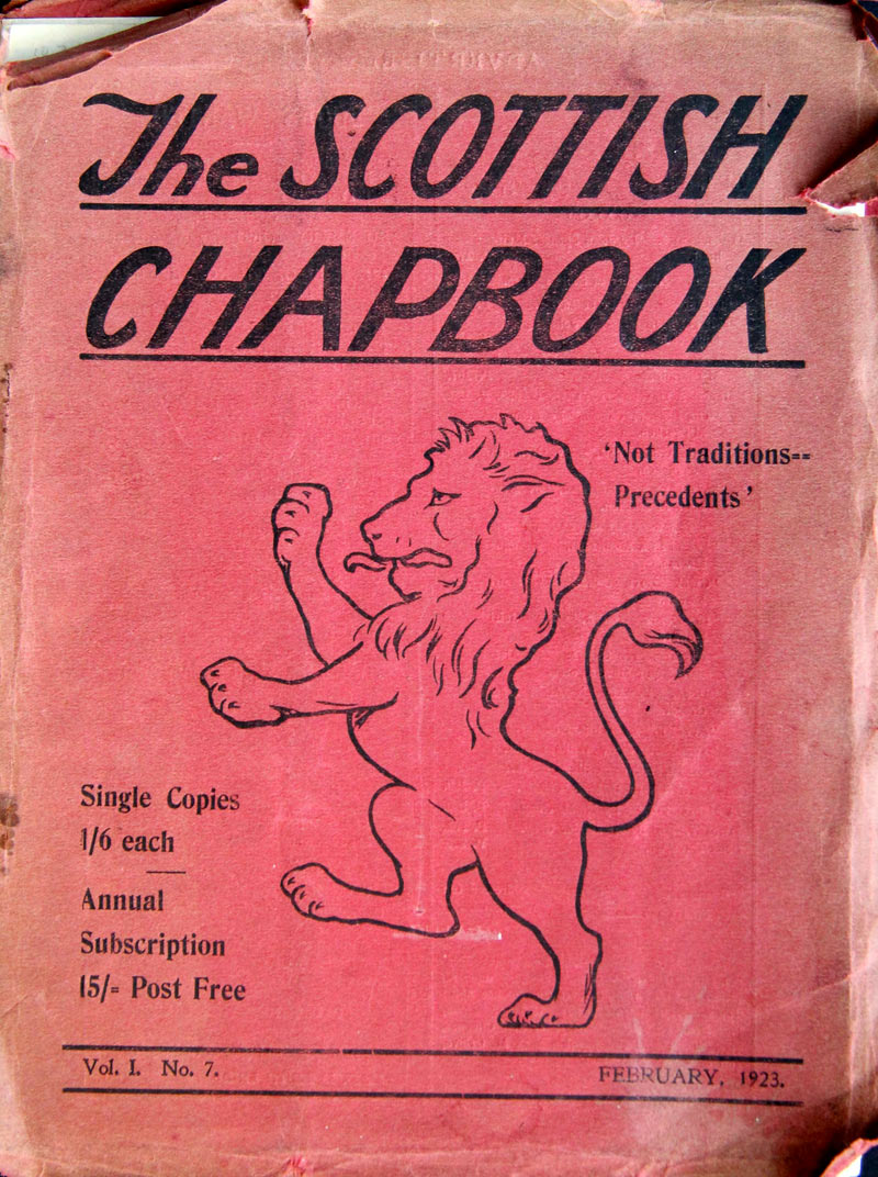 The first issue of The Scottish Chapbook appeared in August 1922. Founded and edited by C. M. Grieve (or the poet Hugh MacDiarmid as he was soon to become), it would establish him as the father of the Scottish Renaissance movement.