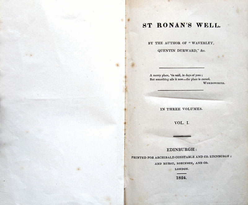 Walter Scott, St. Ronan’s Well. Vol. I. Edinburgh: Archibald Constable and Co., 1824.