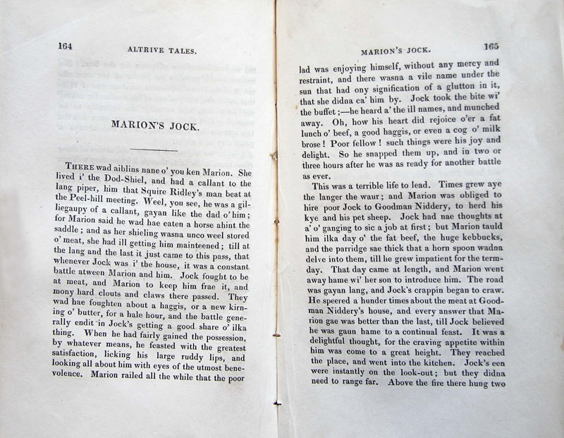 Hogg’s ‘Marion’s Jock’ is a compelling tale of greed told in the Scots dialect of the Border. His Altrive Tales, in which this story appears, was envisaged as a multi-volumed work, but it faulted because his publisher, Cochrane, was declared bankrupt.