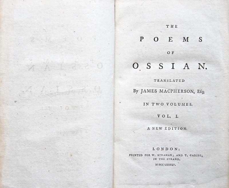 James Macpherson, The Poems of Ossian. Vol. I. London: Printed for W. Strahan; and T. Cadell, 1784-85.
