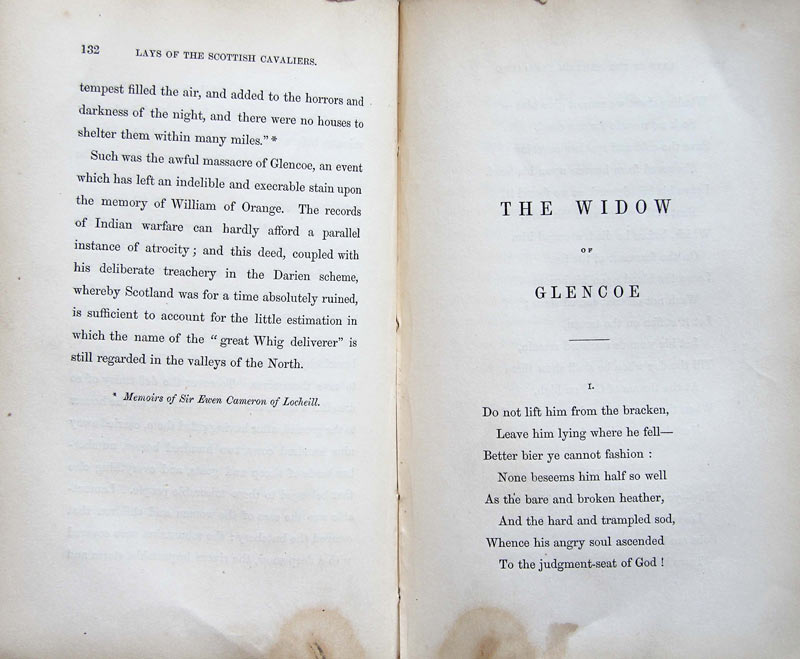 So wrote William Edmondstoune Aytoun (1813-1865) in the preface to ‘The Widow of Glencoe’ in his Lays of the Scottish Cavaliers (1849), a set of Jacobite (a supporter of James VII and II of England or of the Stuart pretenders after 1688) ballads, which first featured in Blackwood’s Magazine.