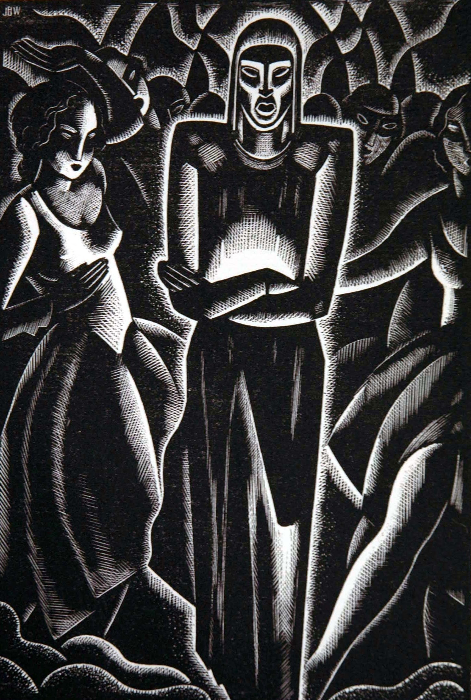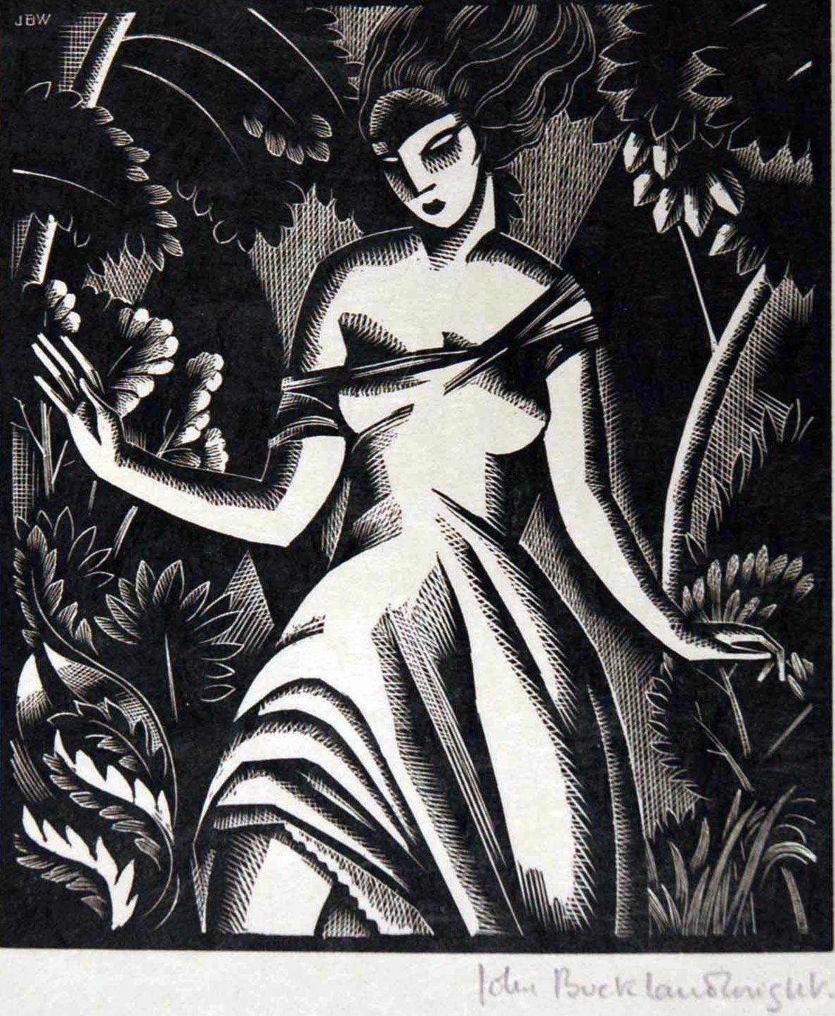 'In my office appeared a tall, young Englishman, slightly nervous about the meeting he was imagining, with a probably bearded Belgian publisher of about 60 years old, who would give him the assignment to make a few wood engravings for a minimal honorarium or that would politely send him away after a few words.' So recalled Alexander A. Stols (1900-1973), the director of the Maastricht-based Halcyon Press, on first meeting JBW. It was a successful meeting, with JBW commissioned to illustrate a limited edition book of John Keats's Sonnets (1930), his first published engravings. This is one of eleven prints from that debut publication. Illustration to poem 'To G. A. W.' from John Keats, The Collected Sonnets. Maastricht: Halcyon Press, 1930. Private Collection. |