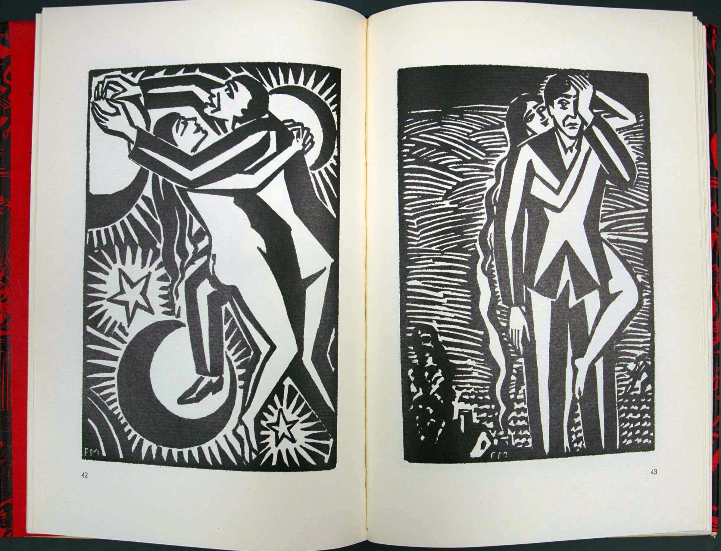 While living in Brussels, at rue Edith Cavelle, JBW set about teaching himself wood and copper engraving. He was fortunate to reside there in the 1920's. Belgium and nearby Holland had a bustling art community, which included writers and artists such as Maeterlinck, Francis Jammes, Waldemar George, Fritz van den Berge, Gustave de Smet, Josef Peeters, and Henri Le Fauconnier. There was also the Parisian set: Matisse, Derain, Picasso, who often exhibited at Belgian galleries. JBW was attached to De Vijf, a group of wood-block printers influenced by Edward Pellens, the father of the 20th century Belgian woodcut. One dominant member was Franz Masereel (1889-1972), a woodcut artist who was a pacifist in World War I. Here are images from his Laster und Leidenschaft (Vice and Passion), a compilation of Masereel's graphic works. Frans Masereel, Laster und Leidenschaft. Hanau: Karl Schustek, 1968. Brasch NE 115.5 M37 A69 1967. |