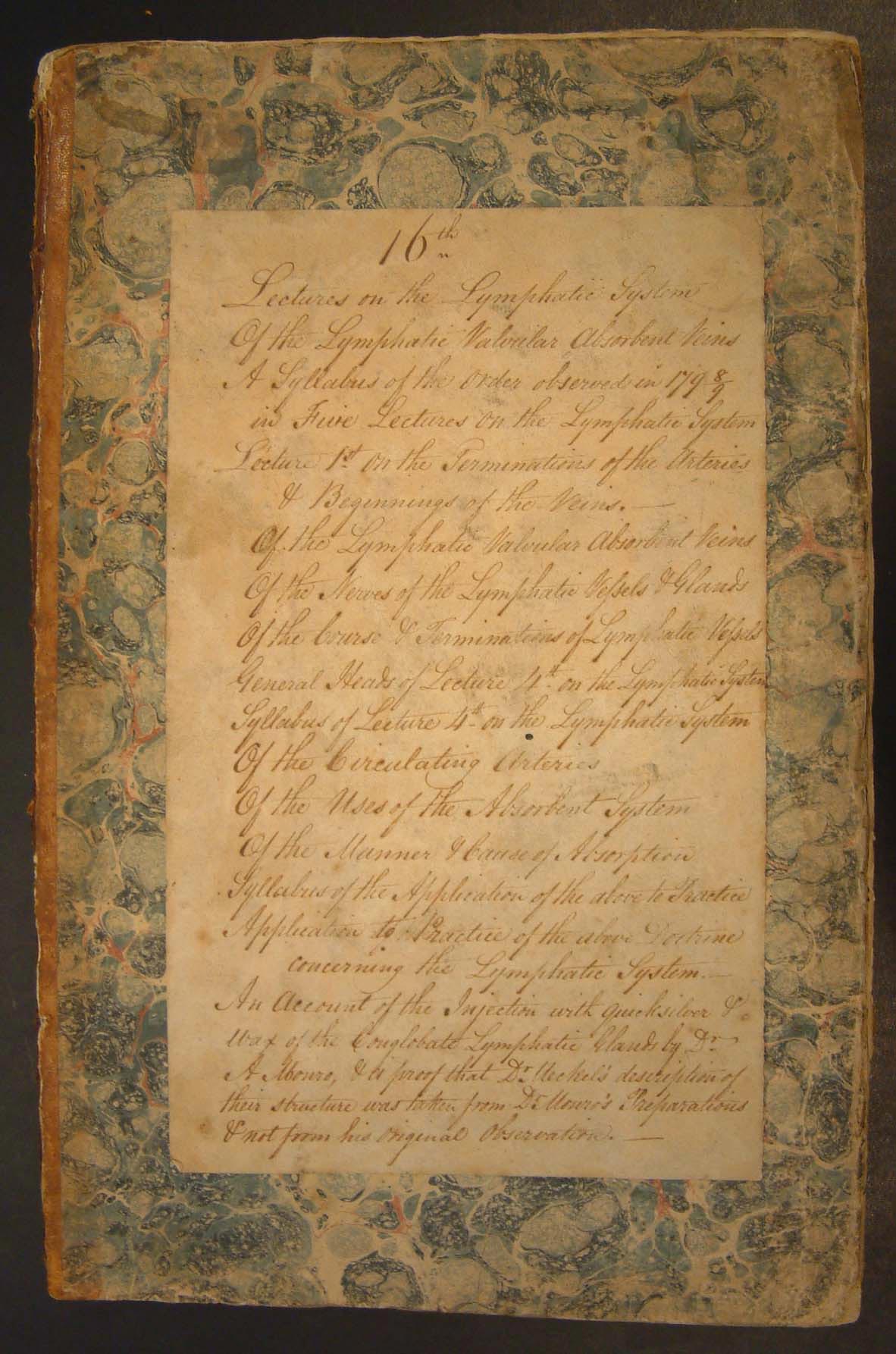 Alexander Monro (secundus), 16th. Lectures on the Lymphatic System of the Valvular Absorbent Veins. A Syllabus of the order observed in 1798/9. Manuscript, ca. 1789-1802.