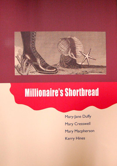 At Clark's Cafe at Wellington Public Library, the four authors and Brendan O'Brien, collage-maker and designer, met to discuss this verse project. The title was taken from the café's popular biscuit-slice made from a rich concoction with layers of chocolate, caramel and shortbread called 'Millionaires Shortbread'. A publisher with foresight and enterprise was then sought, and up stepped OUP. The book launch - those most necessary occasions for every publisher - was held at BAM bookshop in the Wellington Public Library, and predictably the food supplied was from Clark's, including their famed shortbread.