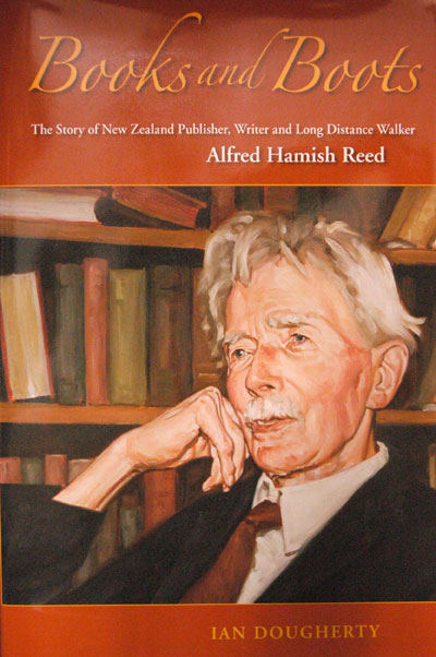 'The first time I met Alfred Hamish Reed, I was eight years old. He was 85.' So begins Ian Dougherty's well-illustrated biography on A. H. Reed, famed publisher, author, and benefactor. Reed was also a tireless walker, hence the 'Boots' in the title. He was almost not. Dougherty relates the time when AHR, as a 13 year old, had to make a decision on whether his left leg should be amputated or not. AHR's cussedness produced a definite NO! Reed was a familiar figure in Dunedin, and Dougherty, a journalist and historian, is based in the South. It was appropriate that UOP published this fine read.