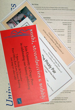 Marketing staff at OUP also collect reviews of their titles, which are copied to authors, and archive all documents relating to their publications. On display is 'Newsletter from 1994', just one of the archived folders. In 2006, the Press initiated a winter programme, 'Fridays at the Press', at which authors talk about their books and which provide an opportunity for staff and the public to mix and mingle and talk books. This is no doubt welcome relief for staff, as they prepare for yet another inevitable deadline.
