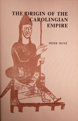 Peter Munz's The Origin of the Carolingian Empire provides a useful case study in the early period of the Press's developments. On 14th December 1959, McIndoe quoted £212 for 2000 copies printed, set in Monotype Times Roman, with a two-colour cover like Fraenkel's Lister. The book went to the printer on 5th April; corrected proofs were returned on 17th May; and it was printed September 1960. The book actually cost £275, and was subsidized by Victoria University of Wellington, where it was on a recommended reading list. They paid £200; the remaining £75 was paid by UOP. There was a 50/50 split, with proceeds from first 400 copies (retail 6s) covering the outlay from UOP. Proceeds from the next 1000 were to repay Victoria. By 18th February 1963, there were 659 copies sold. Munz was reluctant to use his biographical details to sell the book and wrote to Havard-Williams on 1st June 1960: 'But the drab details of my life could be of no interest to anyone: and can have no publicity value at all.