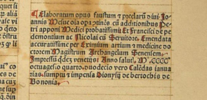 Paper. [294] leaves ; 300 x 210 mm. (fol.). Gothic type; double columns. F.2a: In nomie dei misericordis cuius nutu fmo recipit gratiam et doctrina pfectione principiu uboz Joannis filii Mesuem... Colophon: f.294a: Impressum adez venetijs: Anno salut MCCCC octuagesio quarto. duodecio vero Cale[n]das ianuarias sumptu et impensa Dionysu de bertochis de Bononia. [Variant as noted by Hain and recorded at BMC V: 390]. Rubricated throughout. Leaves of index (at front) wanting; others some damage, including wormed and ripped.