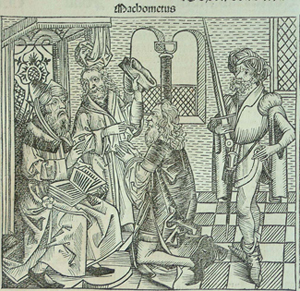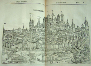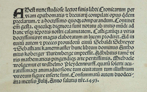 Anton Koberger of Nuremberg (b. about 1445; d.1513) was a goldsmith before he became a printer, and bookseller. In 1470, he established a printery in Nuremberg and his first dated volume was Alcinous, 24 November 1472. In 1483 he produced a German Bible and in 1484 the first book printed in the Hungarian language. Koberger was primarily a publisher, an entrepreneur par excellence, who, by 1500 had produced as many as 200 works and sold them through the various agencies he had in various European cities. He employed traveling salesmen, and issued one of the first advertising circulars. According to statements, Koberger had some twenty-four presses operating a day for his printing and employed over a hundred workmen. Durer was his godson.