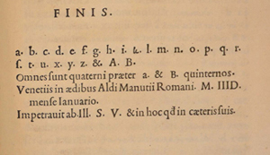 Venice: Aldus Manutius, Romanus, January 1497 [i.e. 1497 or 1498] 'mense Ianuario'.