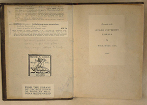 1. Book label of George Dunn of Woolley Hall near Maidenhead 2. Bookplate of Sigurd and Gudrun Wandel 3. Willi Fels, 1946 4. Otago University Library